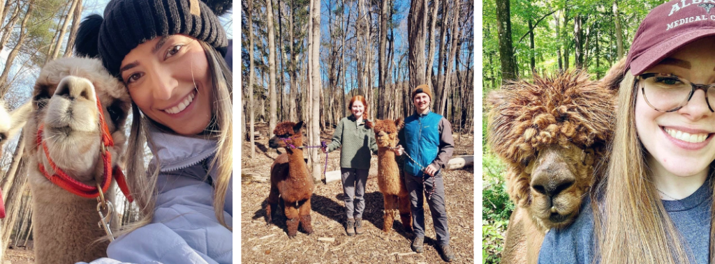 Up to 12 people walk alpacas at once – sign up just 1 spot for yourself or fill all 12 spots with your friends.